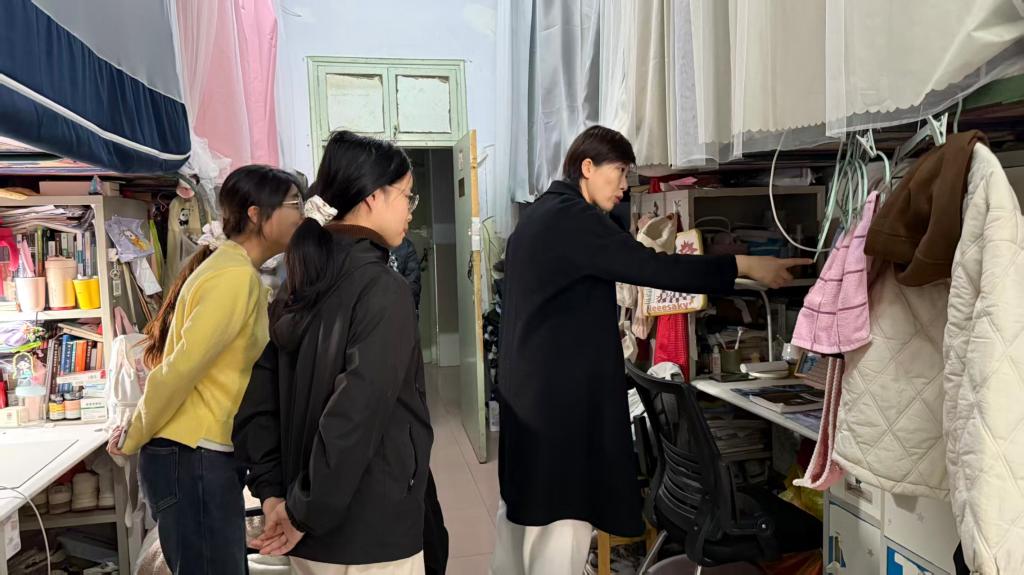 走访过程中,张丽仔细查看了宿舍环境卫生和设施情况,与同学们促膝长谈,详细了解他们的学习进展和生活状况。她关切地询问同学们对新知识的学习情况,认真听取大家对课程设置、校园生活等方面的意见和建议。张丽特别叮嘱学生要注意冬季用电安全,保持宿舍整洁,营造安全舒适的生活环境。