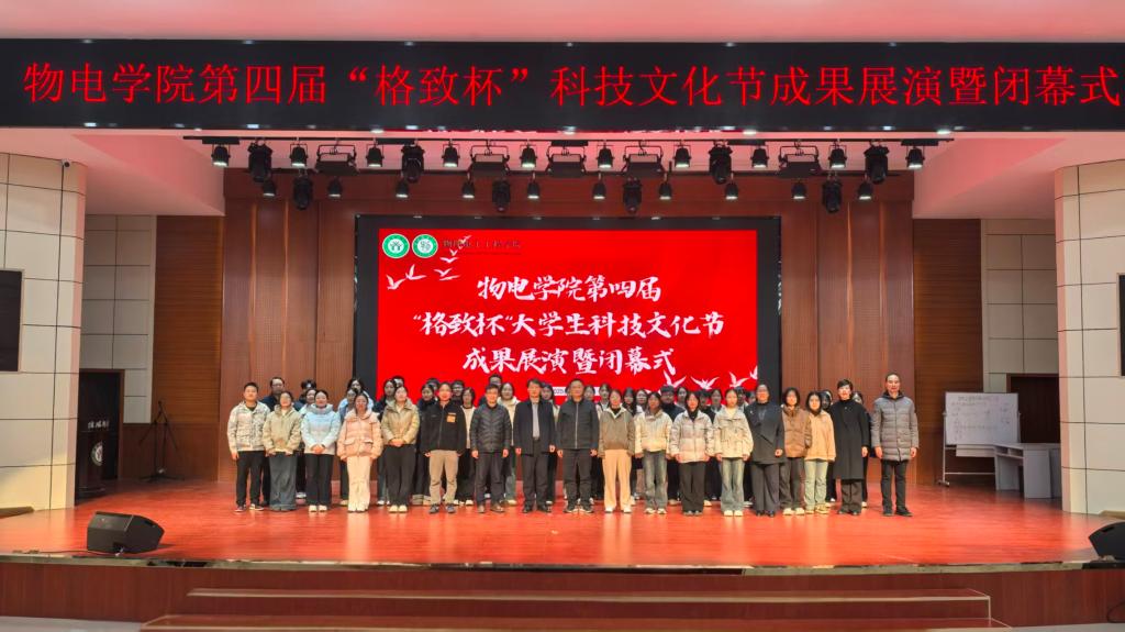 成果展演环节内容丰富、亮点纷呈,全方位展现了物电学子文理兼修、勇于创新的综合素养。书法歌舞表演笔墨含香、舞姿灵动,尽显深厚人文底蕴;《智巡蓝影》等科技项目及实用小发明的现场演示,将奇思妙想转化为服务生活的实际成果,彰显了科技创新的实践价值;师范生技能大赛优秀选手的现场模拟授课,生动诠释了未来教育工作者的专业风采与育人初心。分享环节中,参赛学生代表范宇丹深情讲述了“在一次次打磨中突破自我”的备赛历程,传递出不懈奋斗的青春力量;全国大学生物理实验竞赛一等奖获得者姚婧怡分享了学科竞赛背后的坚守与成长,以自身经历鼓励同学们“以兴趣为引,以毅力为基,在科研路上笃定前行”,引发在场学子的强烈共鸣。