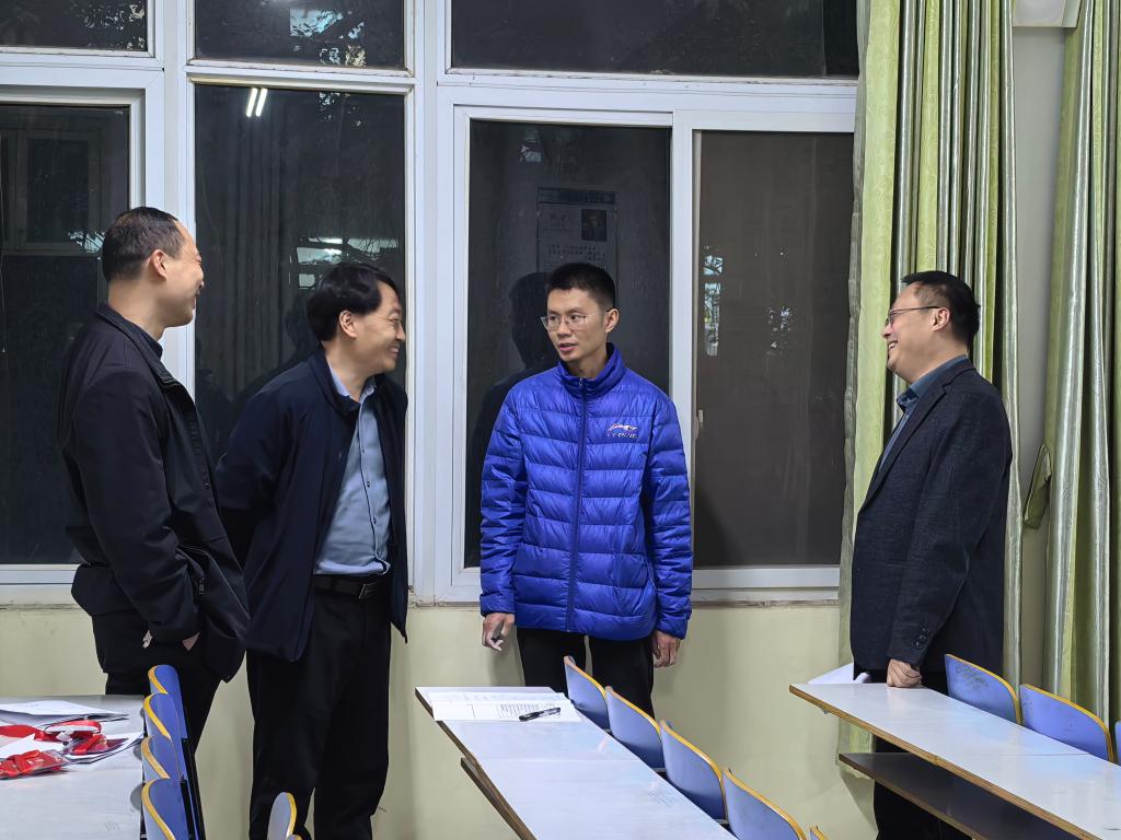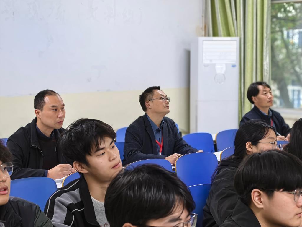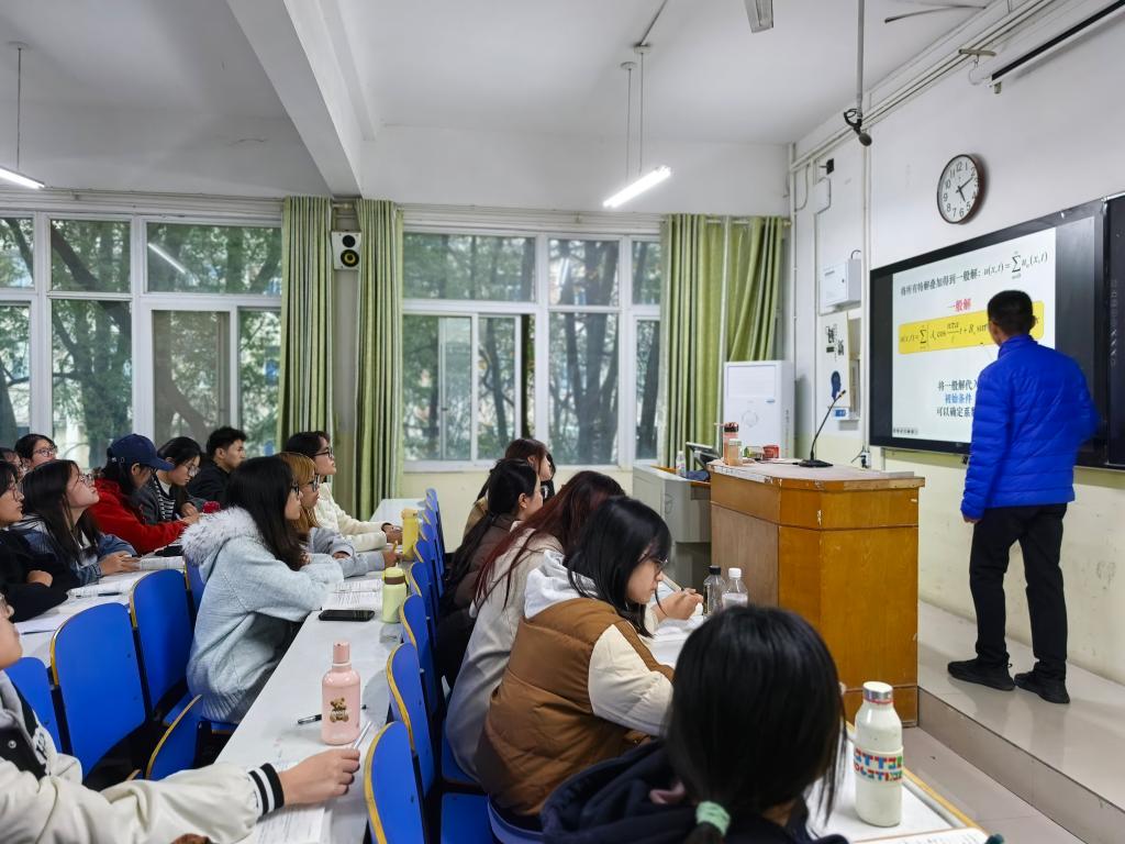 学院领导推门进入谭山校区陈鹏老师的《数学物理方法》课堂,重点关注教学内容、课程思政、课堂组织、教学设施等情况。教师教学准备充分,师生精神饱满。课后,方明科,龚克,宋宣玉与任课教师深入交流,从优化课程设计、改进教学方法、运用信息技术等方面提出中肯建议。